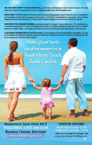 WE ARE VERY HAPPY TO WELCOME YOU, your family and friends to North Myrtle Beach. We truly