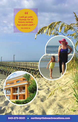“ I will go with Thomas for all future rentals. Top-notch staff.” DELORES W. • 843-273-3001 northmyrtlebeachvacations.com